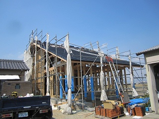 □豊橋市神野新田町 大屋根の奥行きのある広縁を設けた家 A様邸の現場です。